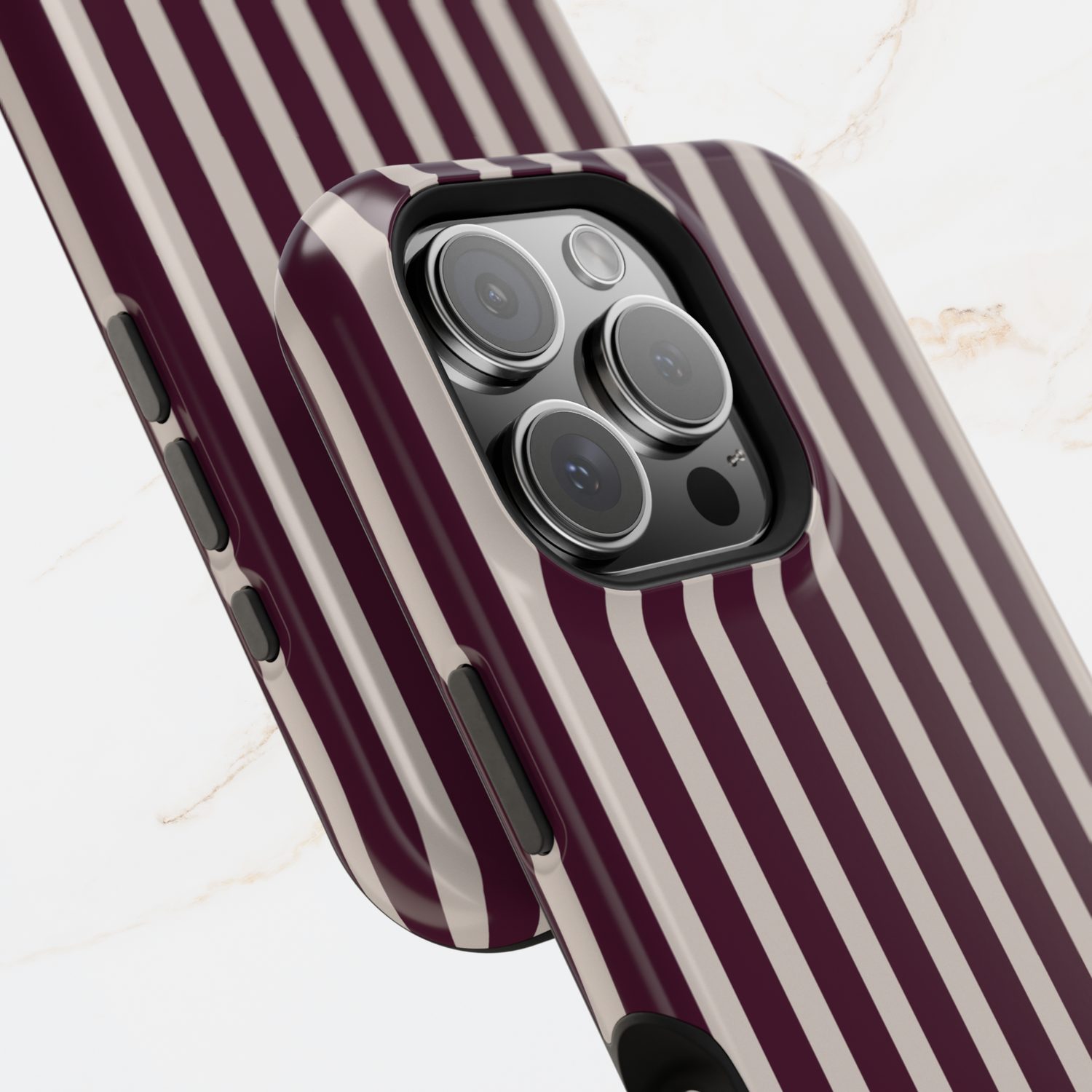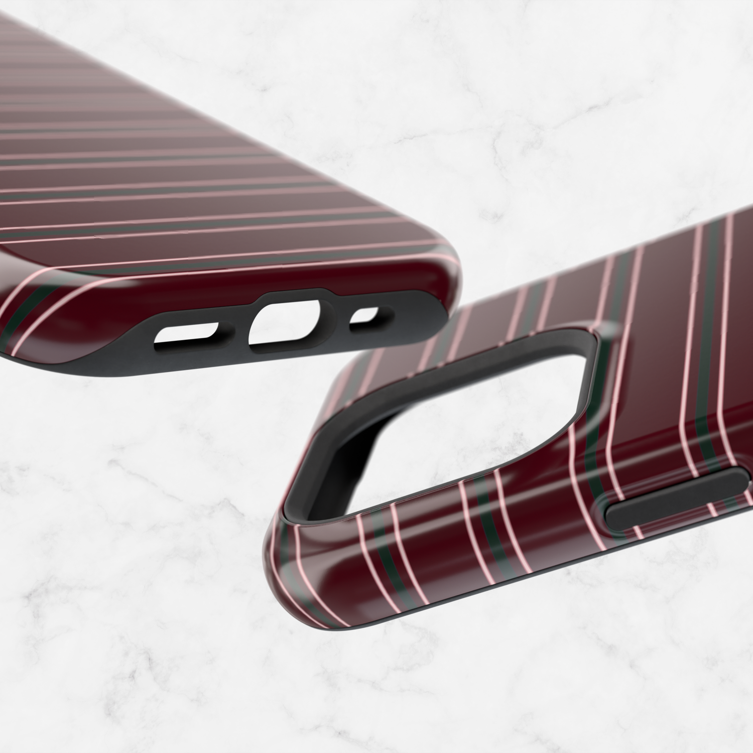 Our phone case combines a pristine white base with burgundy highlights for stunning contrast.